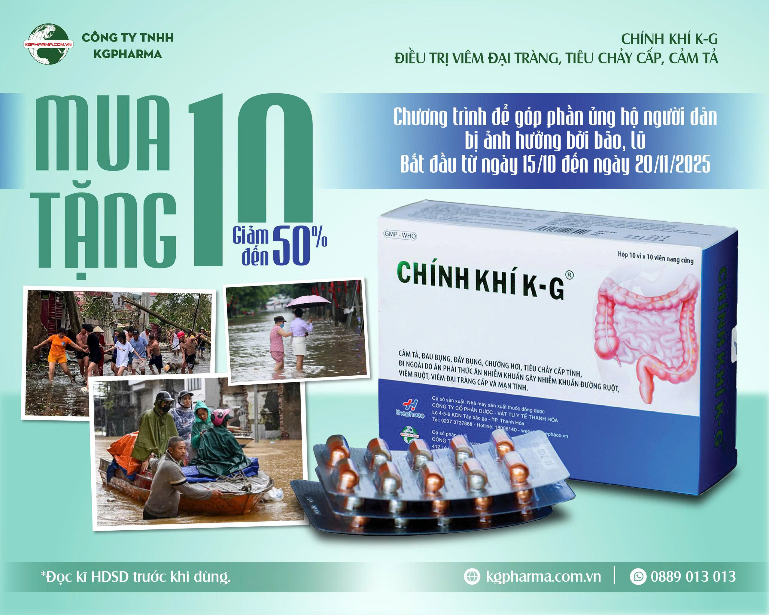 Nhằm lan tỏa tinh thần sẻ chia và bảo vệ sức khỏe cộng đồng, KGPharma triển khai chương trình: “Mua 10 Tặng 10 – Giảm đến 50%” khi mua sản phẩm Chính Khí K-G